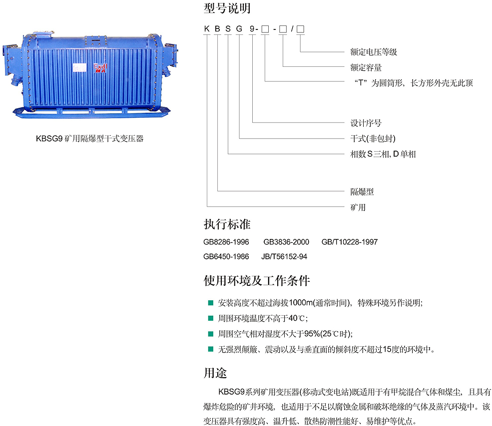 KBSG9矿用隔爆型干式变压器
