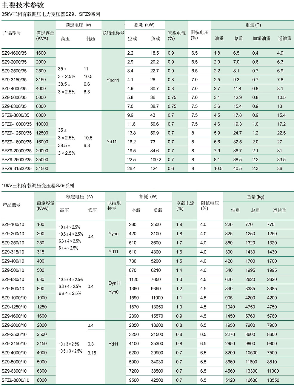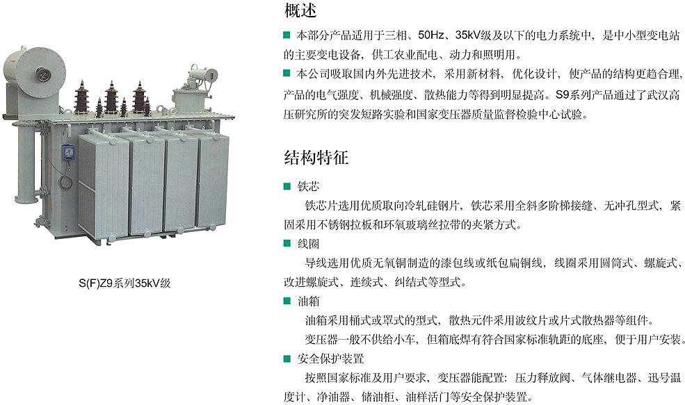 S(F)Z9 10、35KV级系列油浸式有载调压变压器