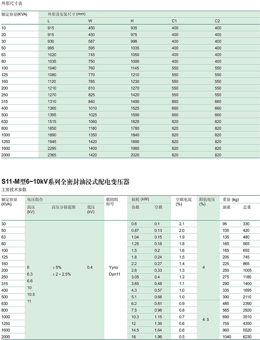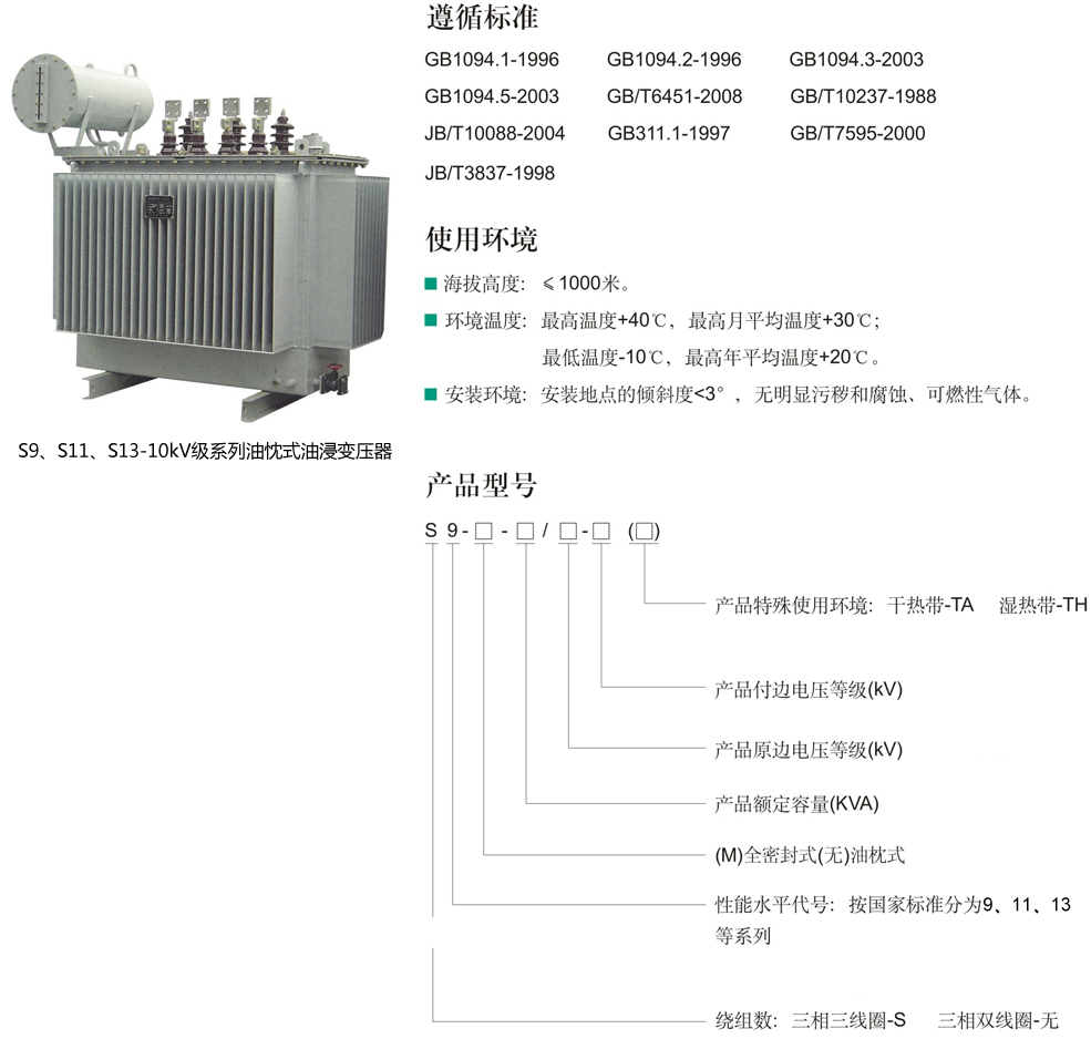 S9、S11、S13-10KV级系列油忱浸变压器