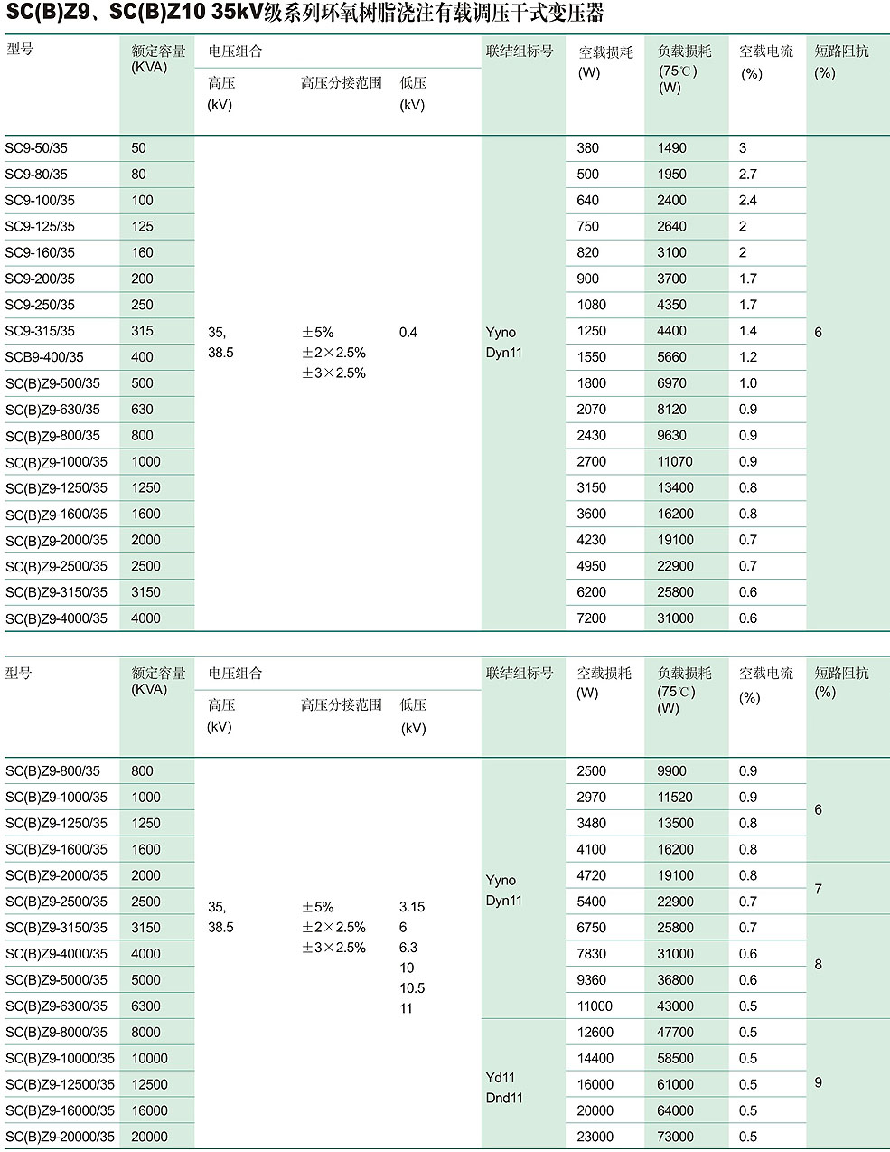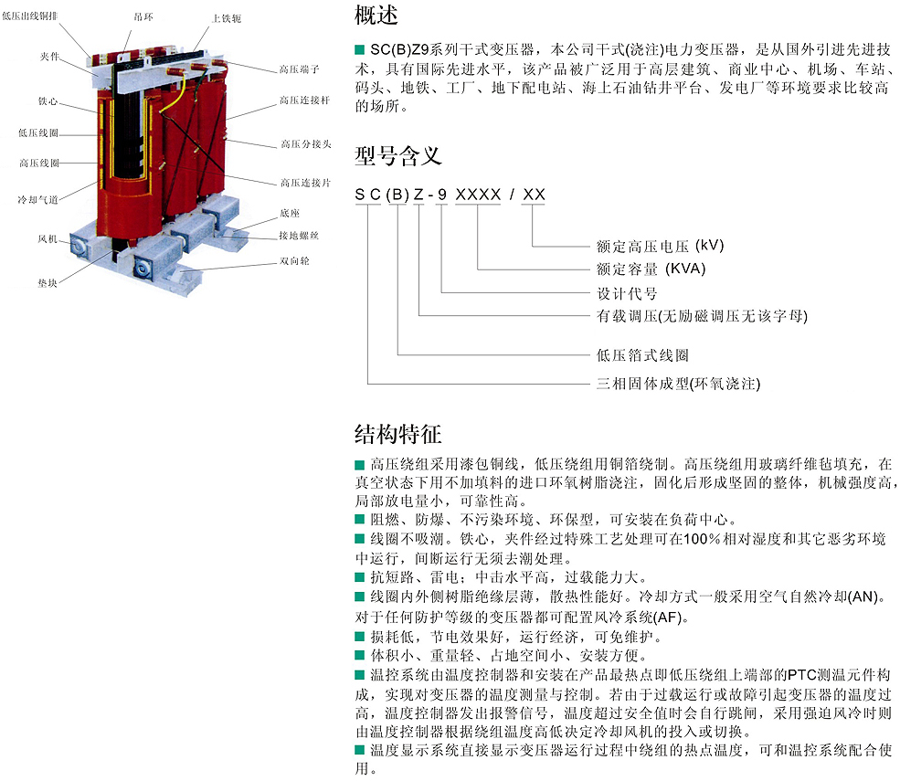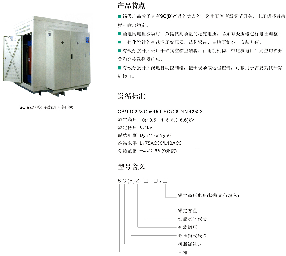 SC(B)Z9、SC(B)Z10、SC(B)Z11 10KV级系列环氧树脂浇注有载调压干式变压器