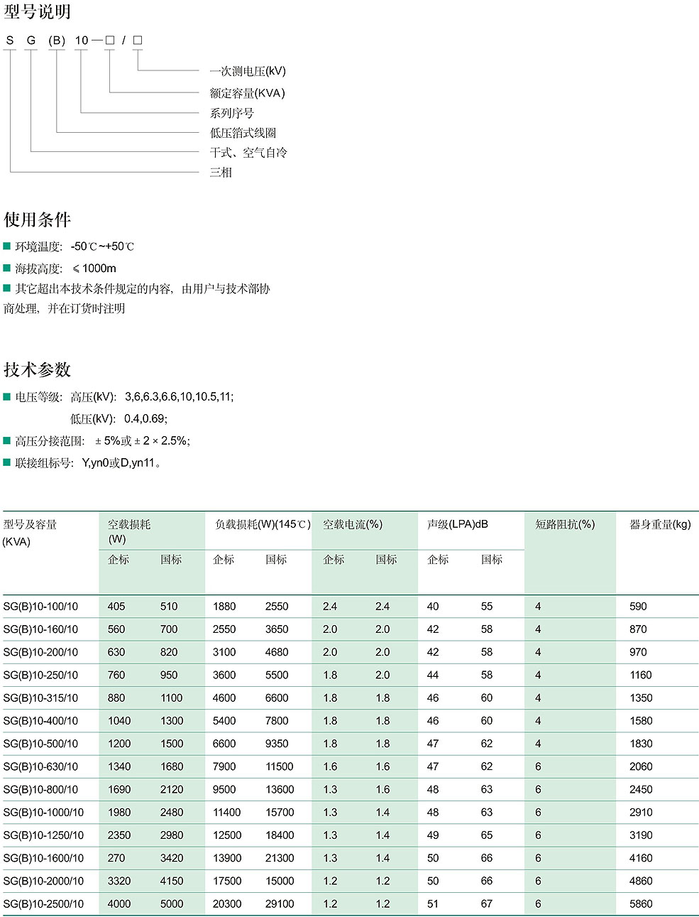 SG10 6~10KV级系列H级非封绝缘干式变压器